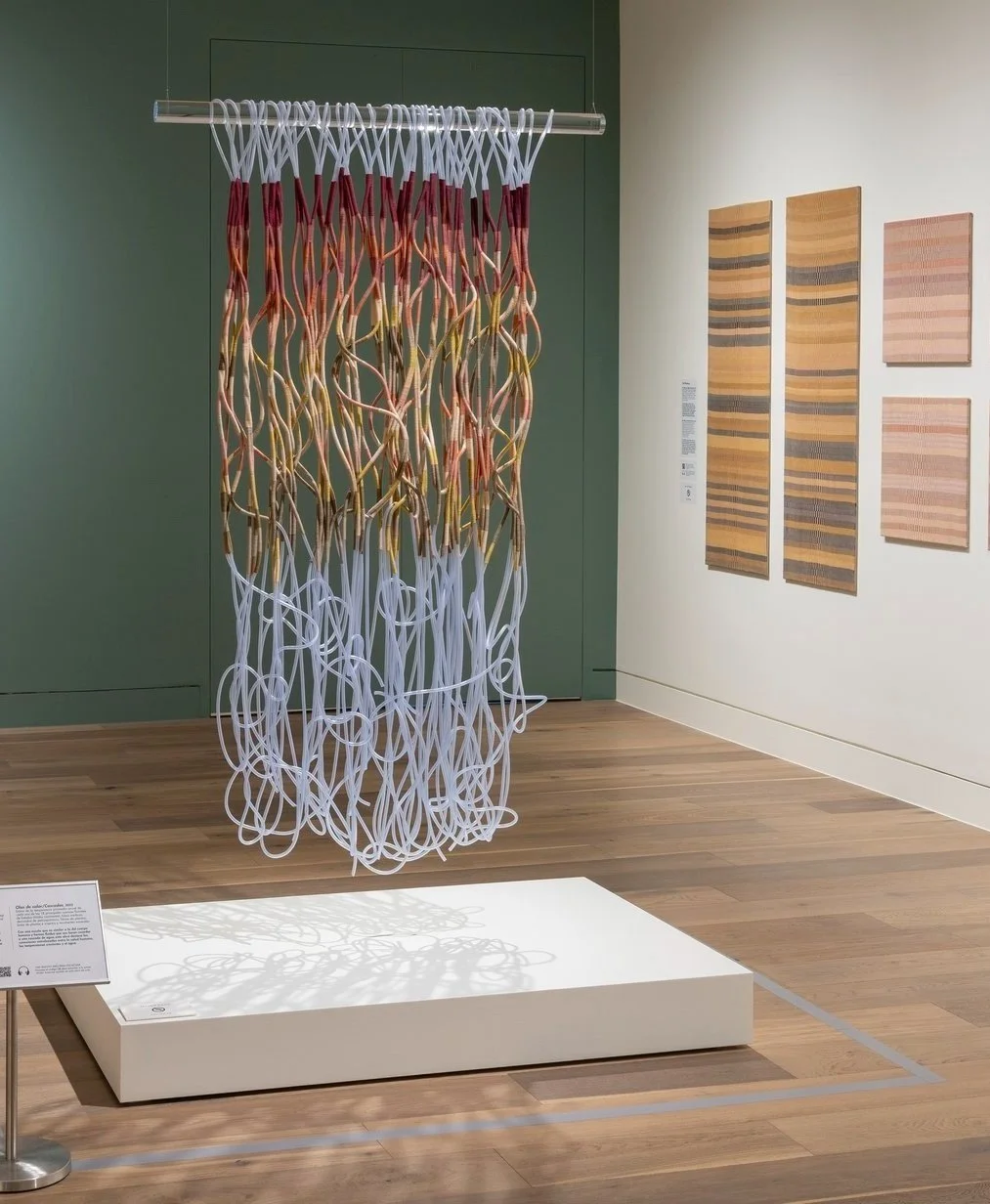 I translate climate data from the National Oceanic and Atmospheric Administration into abstracted landscapes and waterscapes, materializing the data with plant-derived fibers and dyes and petrochemical-derived medical tubing and fishing line. These weavings and coiled sculptures merge practices of record keeping with practices of grieving and expressions of scientific research with expressions of lived experience.