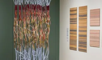 Accomplishments is an exploration of personal data tracking, wearable art, wearable technology, social media, and data physicalization. Each day accomplishments were tracked, first on paper then by sewing spheroid masses onto a dress worn for four months. By hand sewing each accomplishment onto this dress, they became a part of the wearer's physical presence and identity. The work juxtaposes the immediateness of social media posts, and the separate identity we create for ourselves online which is often detached from our physical presence. The work also spoke to the use of wearable technology and the ability to track daily steps, sleep, emotions and other personal information as a standard practice. This data is often shared publicly online, however, these devices often remain invisible by their small size, camouflaged as watches, necklaces or hidden in pockets. Sources: Michelle Sylvestre, Accomplishments. University of Lethbridge (2016) Artist wears her heart, and her accomplishments, on her sleeve.