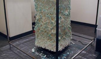 an art installation that automatically creates physical data sculptures, using spam & e-mail as data to trigger the sculpting process. the installation contains robot—like mechanisms that function like a flat-bed plotter, squirting water to dissolve sections of a large block of biodegradable (starch-based) styrofoam. each of the bots is associated with an email address, which triggers to either move or squirt water, depending on an algorithm that uses the email’s content as input data.